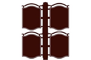 アルミ製の2枚表示の指示板です。文字板はシート加工のため、ご要望に応じたデザインが可能です。支柱は擬木製角柱です。コースの案内板やヤード表示板など様々にご利用いただける高級感のある案内指示板です。
